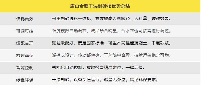 唐山金路作為一家集研發(fā)、生產(chǎn)、銷售、服務(wù)于一體的制砂機(jī)械設(shè)備企業(yè),一直致力于環(huán)保型破碎制砂設(shè)備的研發(fā)與生產(chǎn),現(xiàn)建有年產(chǎn)100萬(wàn)噸的機(jī)制砂生產(chǎn)實(shí)踐基地。公司自主研發(fā)的V8干式整形制砂樓、V9干式制砂樓,具有綠色環(huán)保、能耗低產(chǎn)量高、智能控制等特點(diǎn),產(chǎn)出的機(jī)制砂級(jí)配合理、粒形圓潤(rùn),是制砂生產(chǎn)企業(yè)的理想產(chǎn)品。